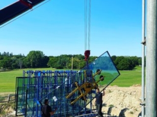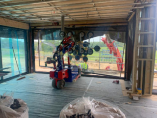 The installation was done entirely by Mark and Luke, two experienced lead installers, who take great pride in their work and like to get every detail right. To install the windows on the higher floors, they had to use the spider crane to lift the glazing robot onto the higher floor to fit the heavy glass panels.... no easy task! But that's where the experience comes in.