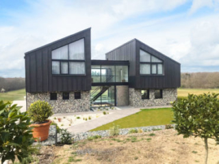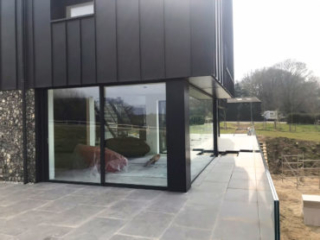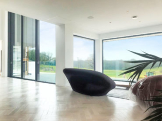 This wonderful self-build home aimed to be different and to maximise light and views. It certainly does that! The house was the first in the UK to be glazed entirely with Solarlux windows & doors. The fixed windows are Solarlux Highline (triple-glazed) and the sliding doors are Solarlux Cero 3 (also triple-glazed) which have an ultra-slim profile making them as frameless as is possible. The central atrium includes huge double-storey Cero sliding doors.