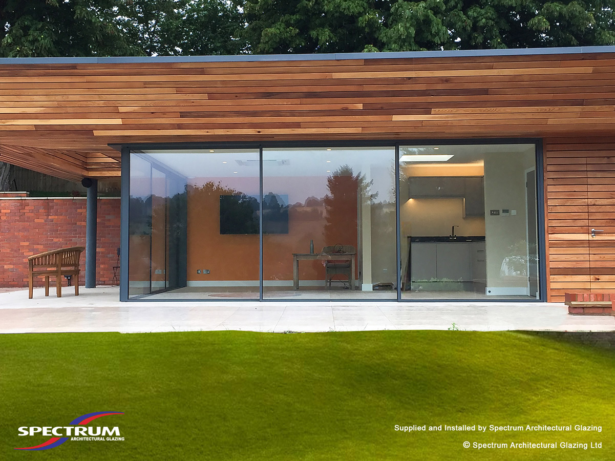 For this garden room project, the architect's design was for two sets of 3-panel cero doors, 6-metres wide per set. The pillar-free open corner allows a whole area of the room to be opened up, but requires a cantilever roof to provide support in the absence of a corner pillar.